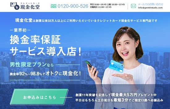 怖いイメージを持っているかたも多い現金化のハードルを下げ、他の業者よりも高く換金できることで集客を目的にしています。