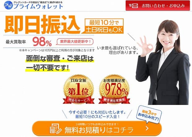 大口利用法人向け(100万以上)の現金化をするときにオススメの業者①プライムウォレット